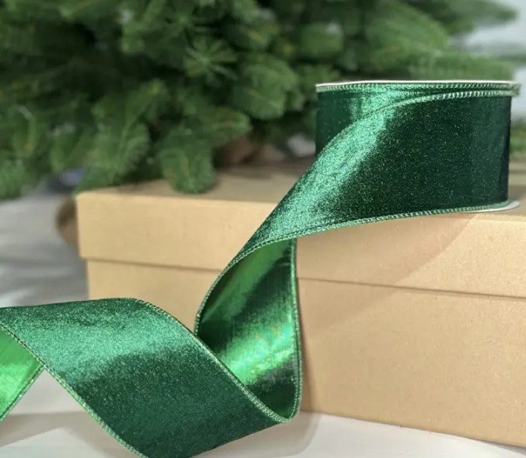 Бархатная лента, W6,3 см, L10м, полиэстер, зеленый
